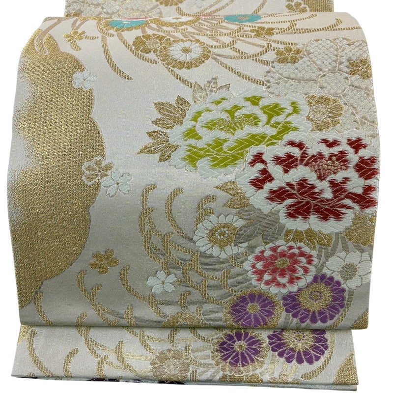 【袋帯】 白系 ベージュ 秀品 A 帯丈436cm以上 7990-9980 美品 二万以下