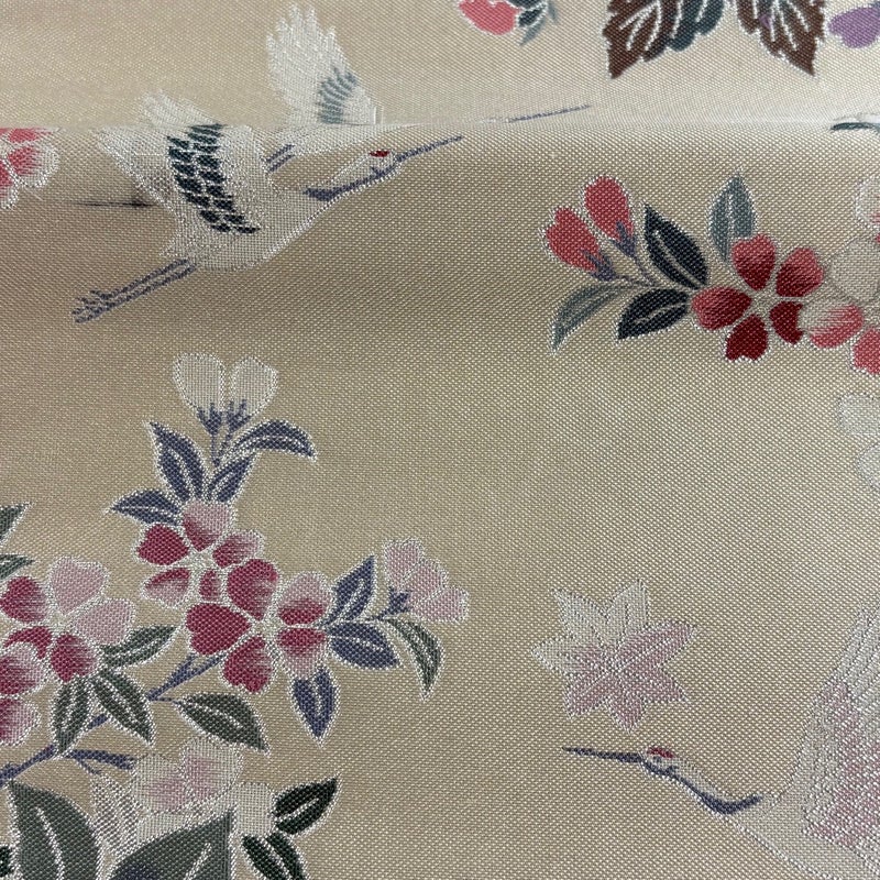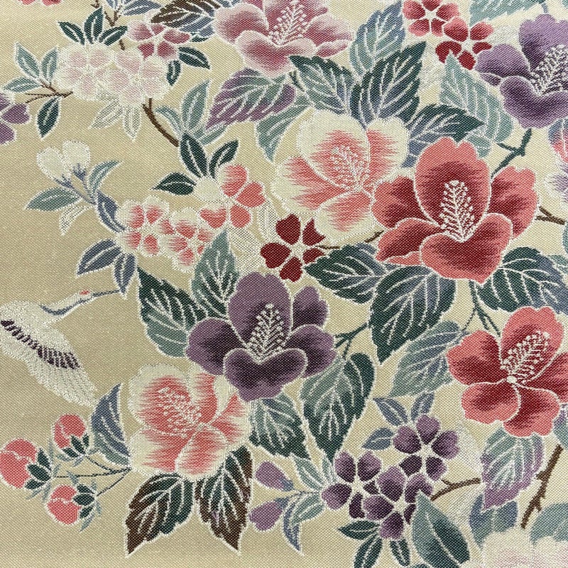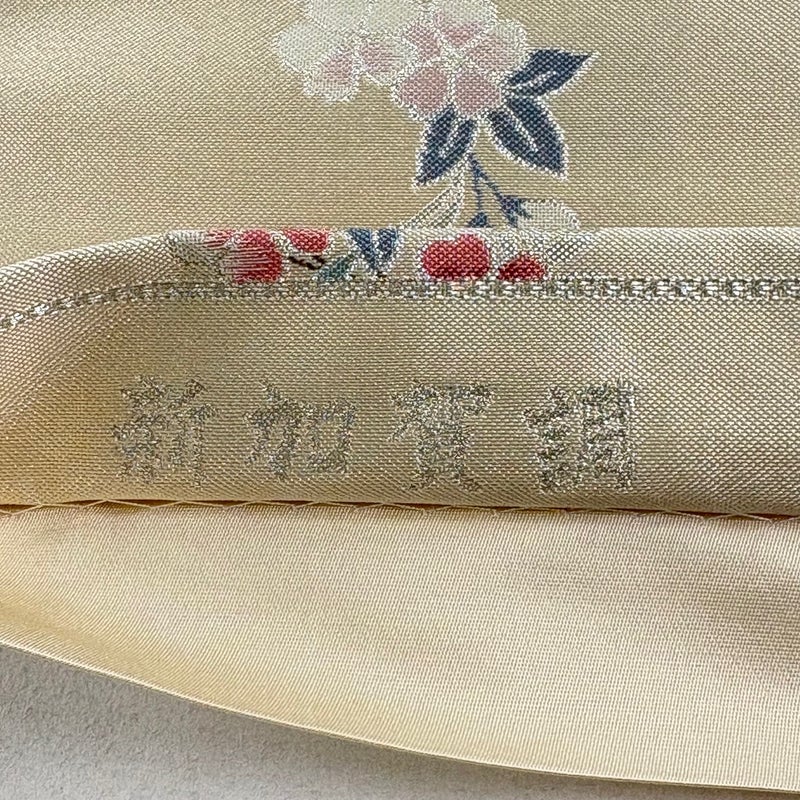 セミフォーマルでお使いいただける袋帯でございます。 見る人に重たい印象を感じさせない女性ならではの、気品豊かな一品です。 お太鼓垂先間に薄いシミ、中無地に線シミがございます。 裏地に薄いシミがございます。 リユース品としては目立った染み傷なく、状態の良いお品でございます。 ※なお、厳しく商品の状態確認を行っておりますが、記載の汚れ以外にも見落とし箇所がある可能性がある旨ご了承いただけますと幸いです。 沢山の商品の中からご覧いただき誠にありがとうございます。