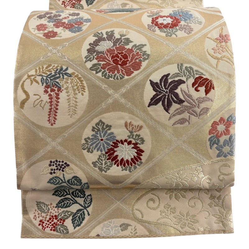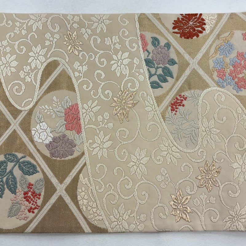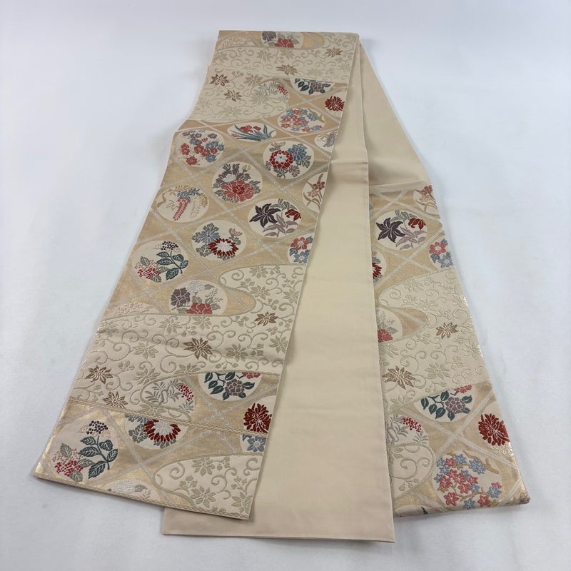 【袋帯】 白系 ベージュ 秀品 A 帯丈436cm以上 7990-9980 美品 二万以下