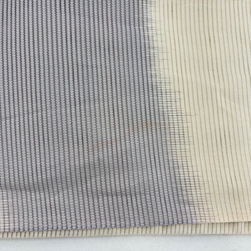 夏帯でございます。 セミフォーマルでお使いいただける袋帯でございます。 見る人に重たい印象を感じさせない女性ならではの、気品豊かな一品です。 締め跡がございます。 中無地所々にシミ、前柄に小さなシミ、中無地全体と前柄お太鼓間にシワがございます。 リユース品としては良い状態で、まだまだご活用頂けると思われます。 ※なお、厳しく商品の状態確認を行っておりますが、記載の汚れ以外にも見落とし箇所がある可能性がある旨ご了承いただけますと幸いです。 沢山の商品の中からご覧いただき誠にありがとうございます。