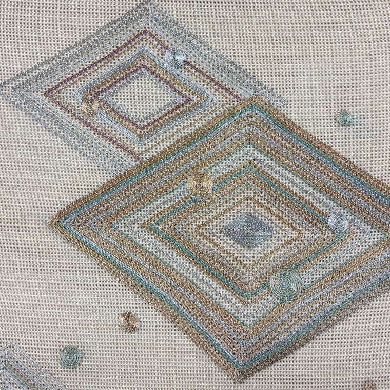 夏帯でございます。 セミフォーマルでお使いいただける袋帯でございます。 見る人に重たい印象を感じさせない女性ならではの、気品豊かな一品です。 手先前柄間に小さなシミ、お太鼓所々に薄いシミ、お太鼓垂先間に点シミがございます。 リユース品としては良い状態で、まだまだご活用頂けると思われます。 ※なお、厳しく商品の状態確認を行っておりますが、記載の汚れ以外にも見落とし箇所がある可能性がある旨ご了承いただけますと幸いです。 沢山の商品の中からご覧いただき誠にありがとうございます。
