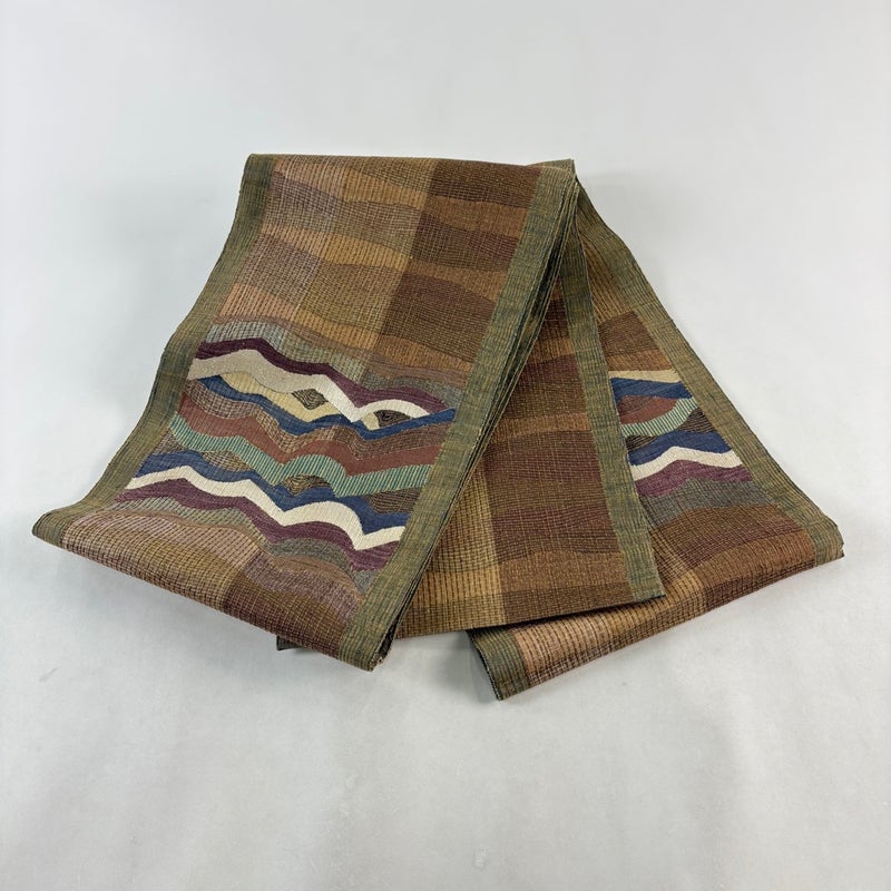 普段使いでお使いいただける袋帯でございます。 カジュアルな装いに合わせてお使いください。 締め跡がございます。 リユース品としては目立った染み傷なく、状態の良いお品でございます。 ※なお、厳しく商品の状態確認を行っておりますが、記載の汚れ以外にも見落とし箇所がある可能性がある旨ご了承いただけますと幸いです。 沢山の商品の中からご覧いただき誠にありがとうございます。