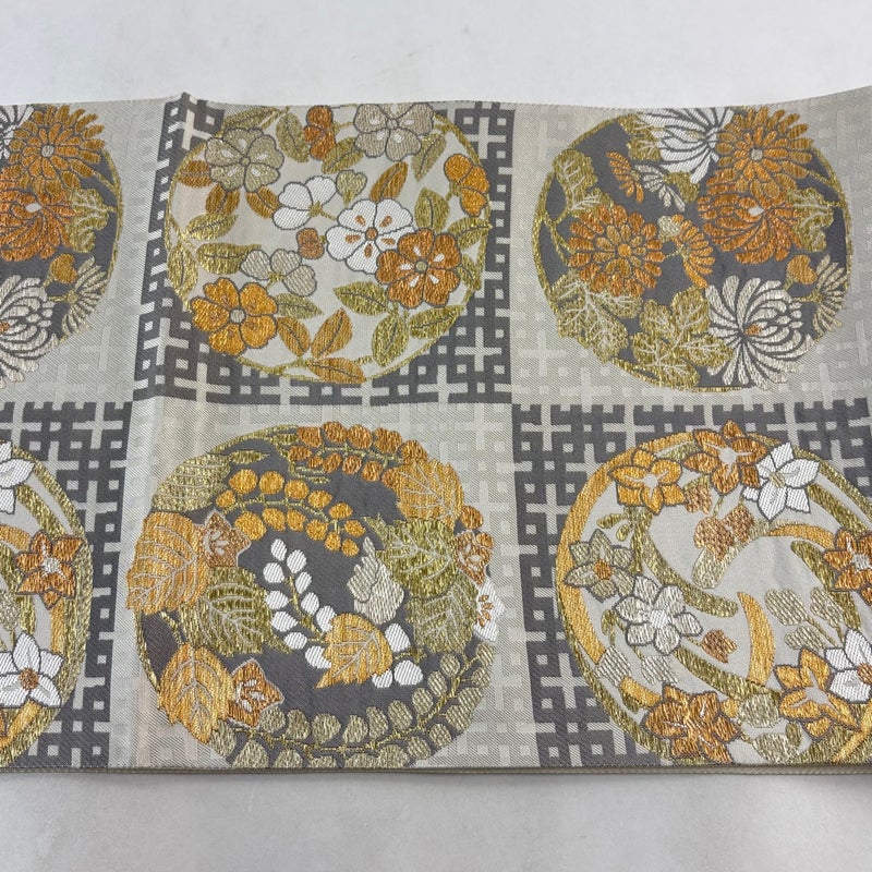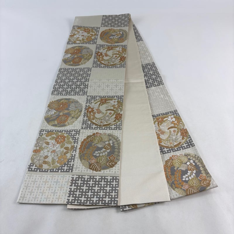 【袋帯】 白系 ベージュ 秀品 A 帯丈436cm以上 7990-9980 美品 二万以下