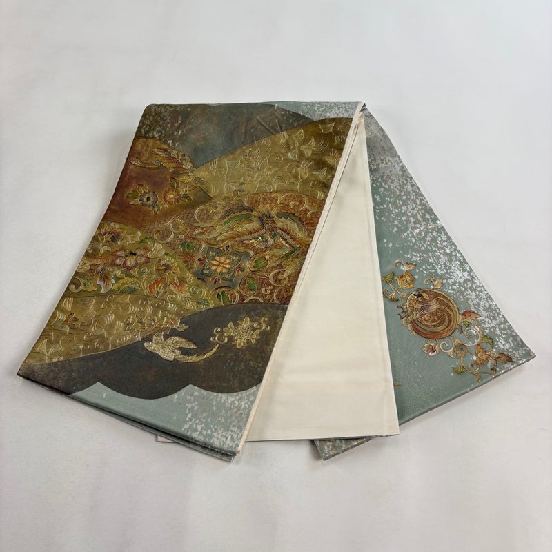 【袋帯】 灰色系 灰緑 秀品 B 帯丈426cm~435cm 4000-7980 二万以下