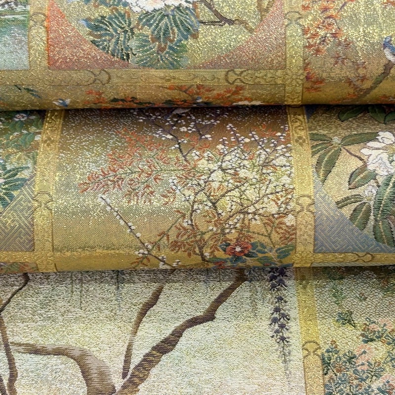【着物ランク】逸品 【素材】正絹 【帯丈】約452cm 【帯幅】約30.5cm 【帯仕立て】仕立て上がり 【状態ランク】ランクA 【帯着用シーン】フォーマル(留袖・振袖・訪問着)