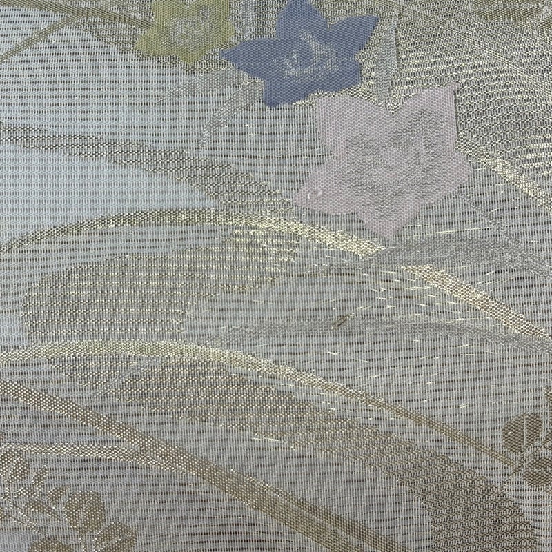 夏帯でございます。 セミフォーマルでお使いいただける袋帯でございます。 見る人に重たい印象を感じさせない女性ならではの、気品豊かな一品です。 帯芯が入っておりません。 お太鼓と中無地所々など表地所々にシミ、お太鼓に糸のほつれがございます。 裏地所々にシミがございます。 リユース品としては良い状態で、まだまだご活用頂けると思われます。 ※なお、厳しく商品の状態確認を行っておりますが、記載の汚れ以外にも見落とし箇所がある可能性がある旨ご了承いただけますと幸いです。 沢山の商品の中からご覧いただき誠にありがとうございます。