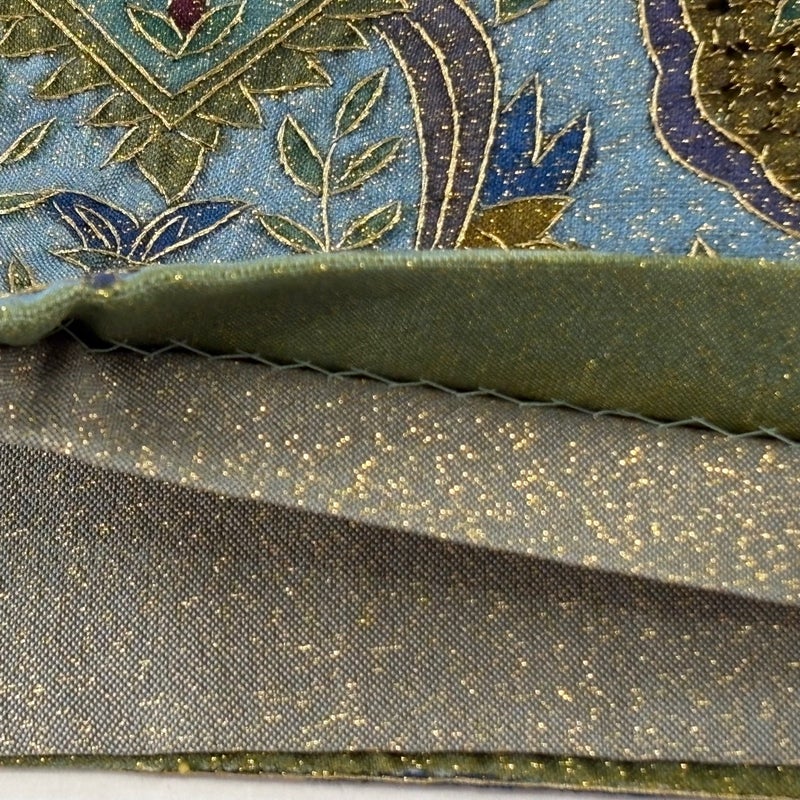 セミフォーマルでお使いいただける袋帯でございます。 見る人に重たい印象を感じさせない女性ならではの、気品豊かな一品です。 締め跡がございます。 手先に金糸のほつれがございます。 ※締め跡が裏地の垂先側にございます。 リユース品としては目立った染み傷なく、状態の良いお品でございます。 ※なお、厳しく商品の状態確認を行っておりますが、記載の汚れ以外にも見落とし箇所がある可能性がある旨ご了承いただけますと幸いです。 沢山の商品の中からご覧いただき誠にありがとうございます。