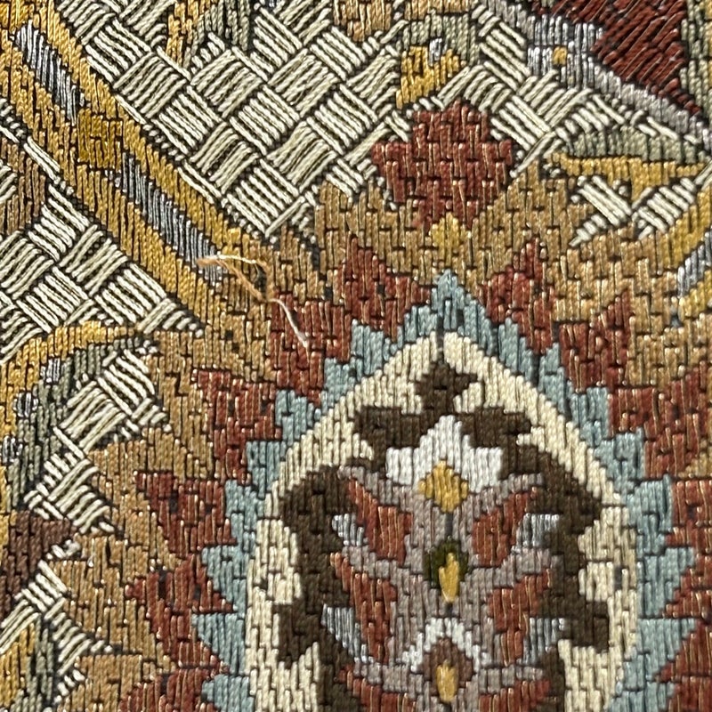 おめでたい席に相応しい意匠の袋帯でございます。 格式高いお席にもお使いいただけますので、お見逃しのないようお願いいたします。 締め跡がございます。 手先前柄間にほつれ、お太鼓垂先間と手先前柄間の畳み目沿いに刺繍糸のゆるみがございます。 ※お太鼓含む裏地全体に締め跡がございます。 リユース品としては目立った染み傷なく、状態の良いお品でございます。 ※なお、厳しく商品の状態確認を行っておりますが、記載の汚れ以外にも見落とし箇所がある可能性がある旨ご了承いただけますと幸いです。 沢山の商品の中からご覧いただき誠にありがとうございます。