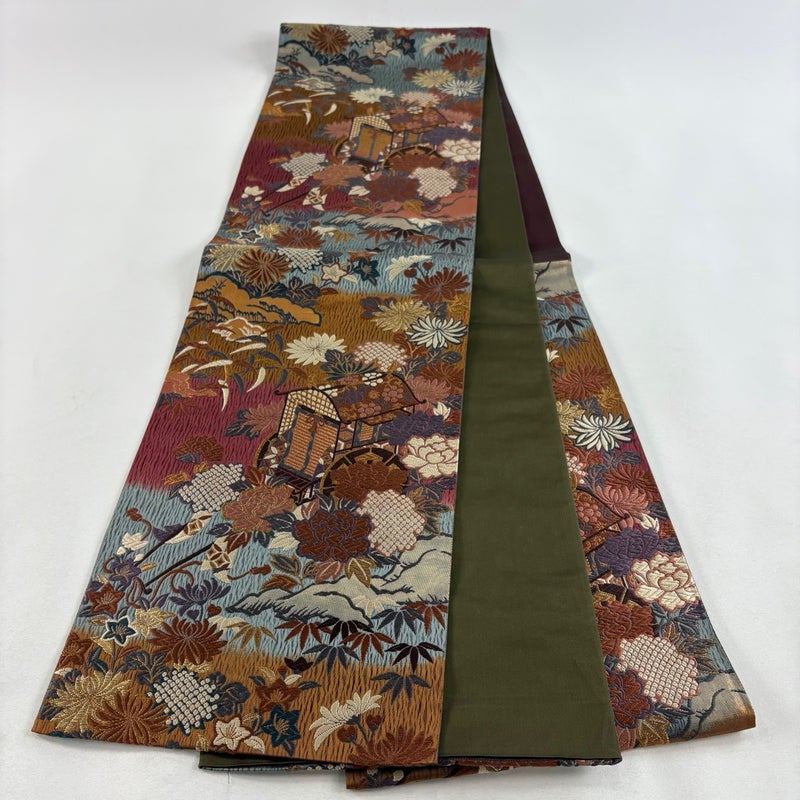 【着物ランク】秀品 【素材】正絹 【帯丈】約436cm 【帯幅】約31.5cm 【帯仕立て】仕立て上がり 【状態ランク】ランクB 【帯着用シーン】セミフォーマル(色無地・付下げ)