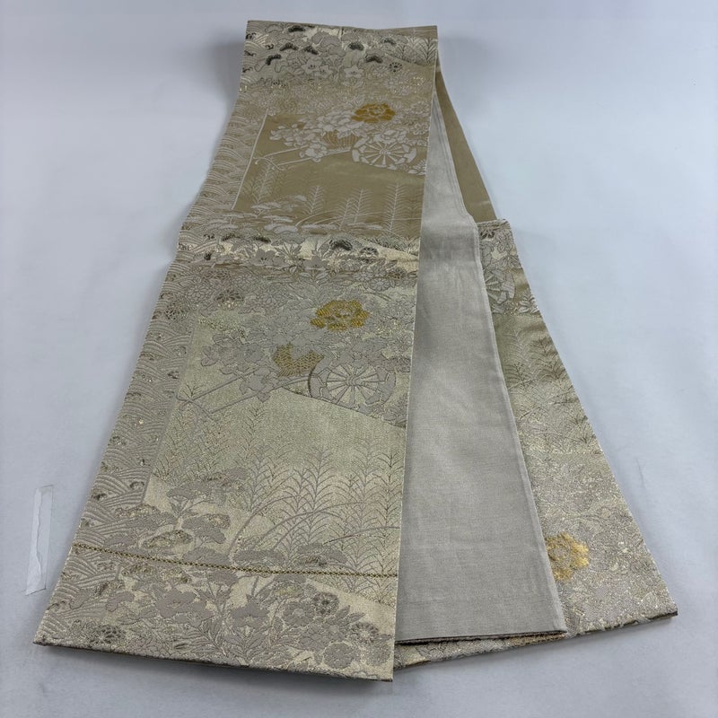 【着物ランク】秀品 【素材】正絹 【帯丈】約424cm 【帯幅】約31.5cm 【帯仕立て】仕立て上がり 【状態ランク】ランクB 【帯着用シーン】セミフォーマル(色無地・付下げ)
