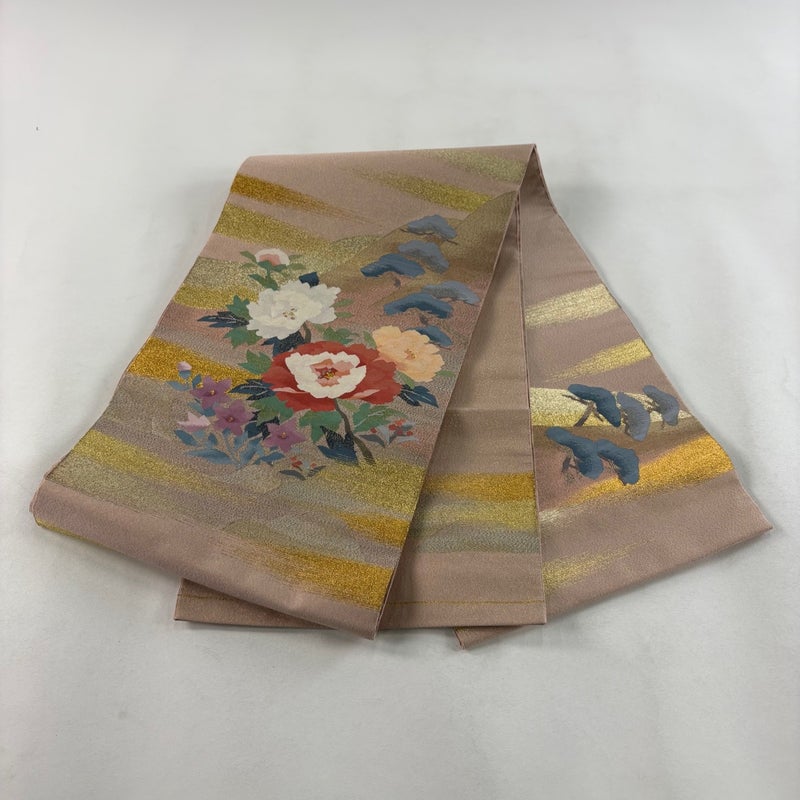 【袋帯】 赤系 ピンクベージュ 名品 A 帯丈426cm~435cm 9990-29990 美品 二万以下
