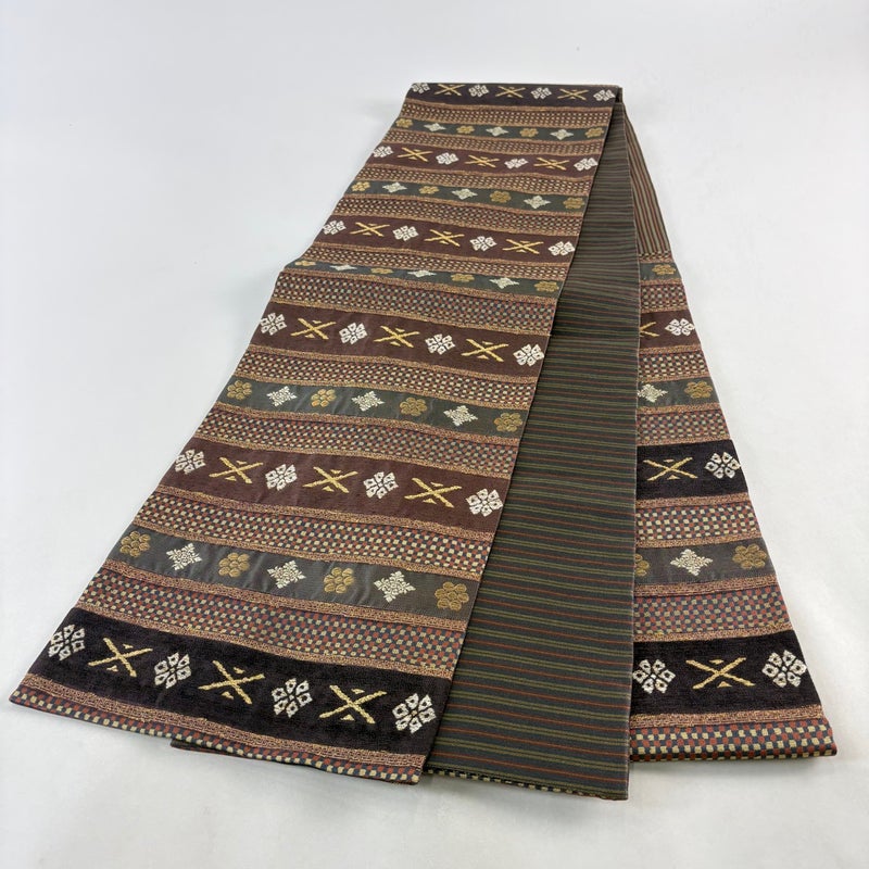 【袋帯】 茶系 茶色 名品 A 帯丈436cm以上 9990-29990 美品 二万以下
