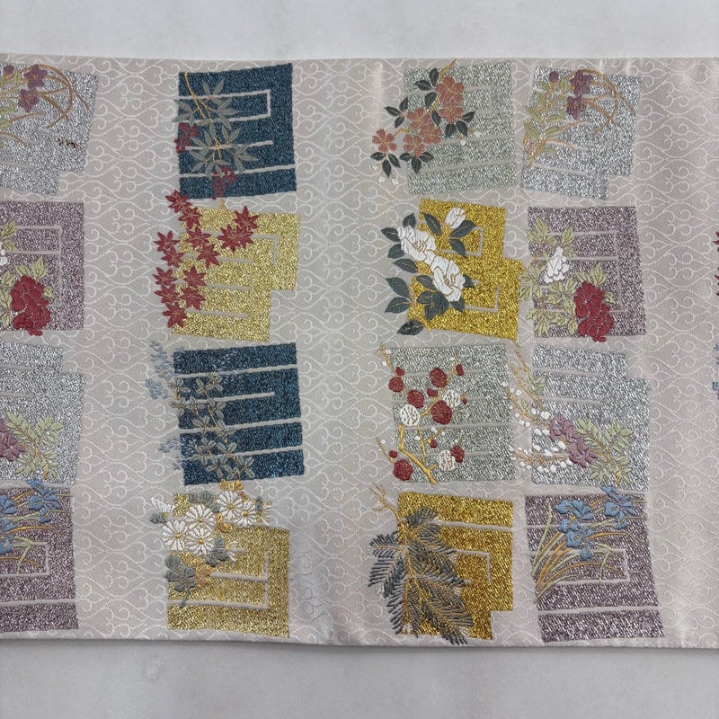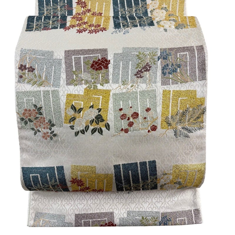 【袋帯】 白系 クリーム 名品 B 帯丈401cm~425cm 9990-29990 二万以下