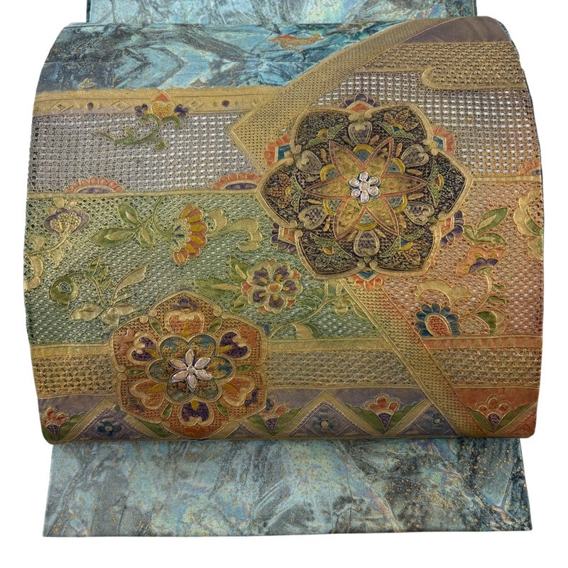 【袋帯】 緑系 薄緑 名品 A 帯丈436cm以上 9990-29990 美品 二万以下