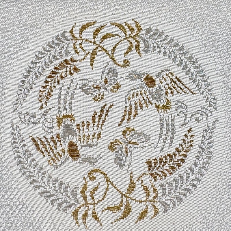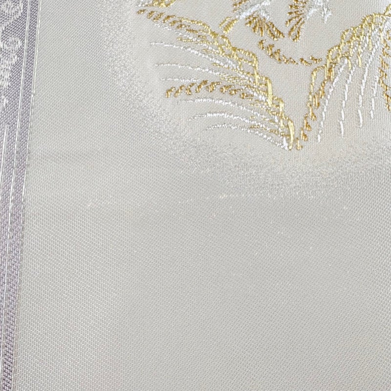 セミフォーマルでお使いいただける袋帯でございます。 見る人に重たい印象を感じさせない女性ならではの、気品豊かな一品です。 中無地に生地のヨレ、中無地とお太鼓垂先間にシミがございます。 裏地にシミがございます。 ※締め跡がお太鼓を含む帯全体にございます。 リユース品としては良い状態で、まだまだご活用頂けると思われます。 ※なお、厳しく商品の状態確認を行っておりますが、記載の汚れ以外にも見落とし箇所がある可能性がある旨ご了承いただけますと幸いです。 沢山の商品の中からご覧いただき誠にありがとうございます。