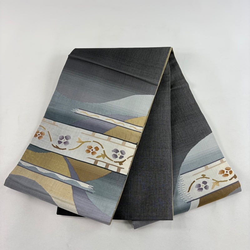 【袋帯】 灰色系 青灰色 秀品 A 帯丈436cm以上 7990-9980 美品 二万以下