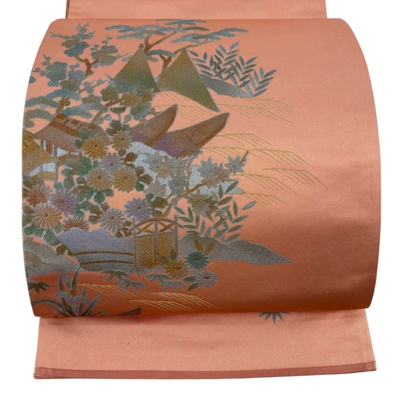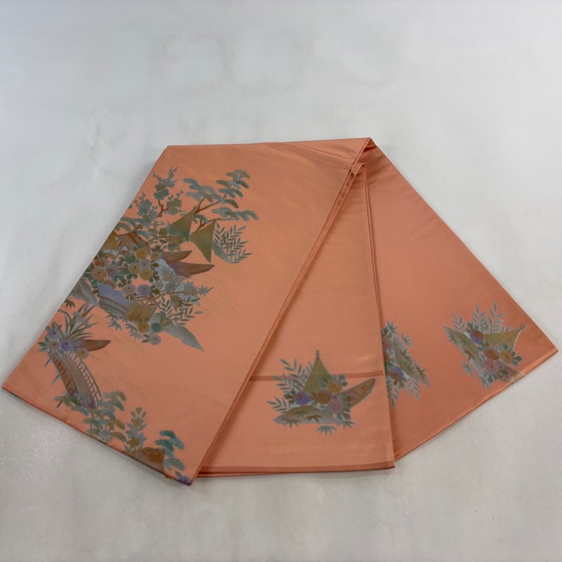 【袋帯】 赤系 サーモンピンク 秀品 A 帯丈436cm以上 7990-9980 美品 二万以下