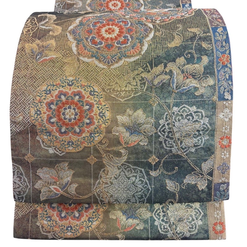 【袋帯】 茶系 茶緑色 秀品 B 帯丈426cm~435cm 4000-7980 二万以下