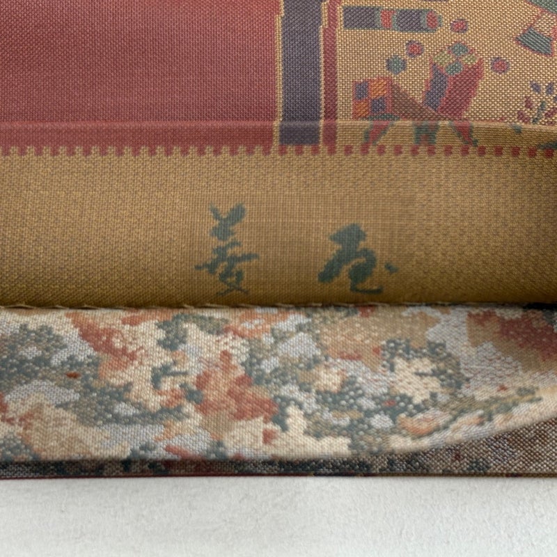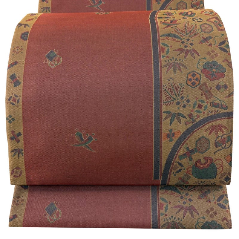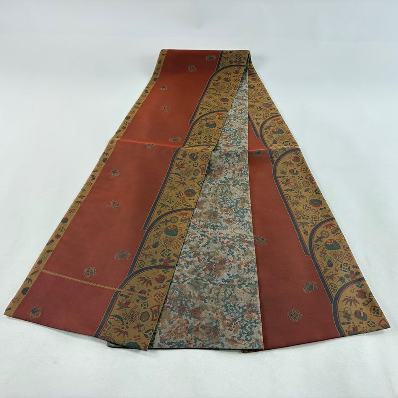 【美品】 袋帯 秀品 落款あり 菱屋 宝尽くし 赤茶 全通 正絹