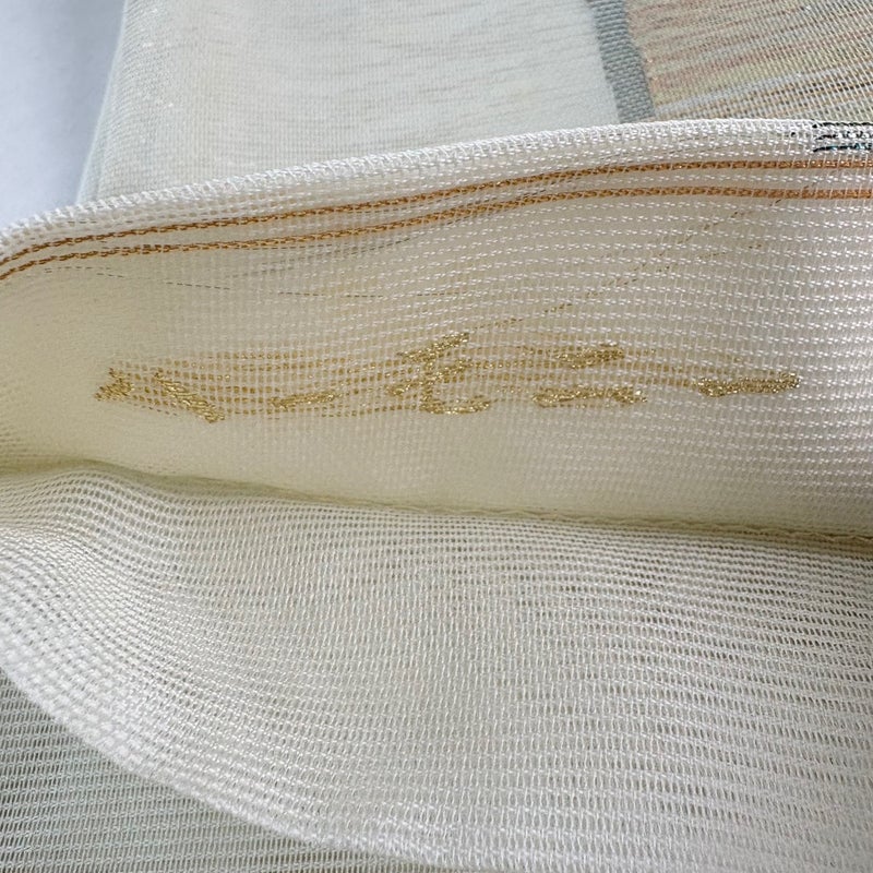 夏帯でございます。 セミフォーマルでお使いいただける袋帯でございます。 見る人に重たい印象を感じさせない女性ならではの、気品豊かな一品です。 締め跡がございます。 お太鼓垂先間に帯芯のヨレ、表地所々にヤケ、表地所々と垂先とお太鼓垂先間に薄いシミ、お太鼓柄付近にシワがございます。 裏地所々にシミがございます。 ご購入の際はその点ご留意ください。 ※なお、厳しく商品の状態確認を行っておりますが、記載の汚れ以外にも見落とし箇所がある可能性がある旨ご了承いただけますと幸いです。 沢山の商品の中からご覧いただき誠にありがとうございます。