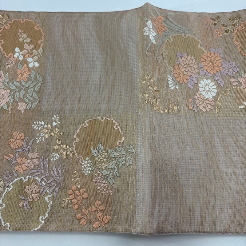 【袋帯】 赤系 ピンクベージュ 秀品 B 帯丈436cm以上 9990-29990 二万以下