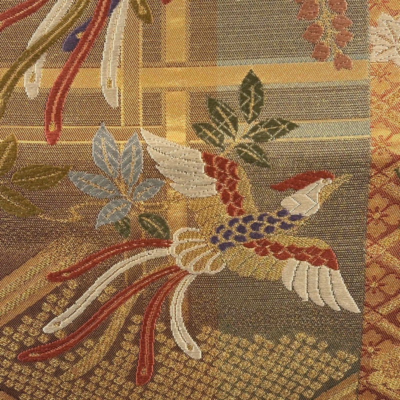 【着物ランク】秀品 【素材】正絹 【帯丈】約434cm 【帯幅】約30.5cm 【帯仕立て】仕立て上がり 【状態ランク】ランクB 【帯着用シーン】セミフォーマル(色無地・付下げ)