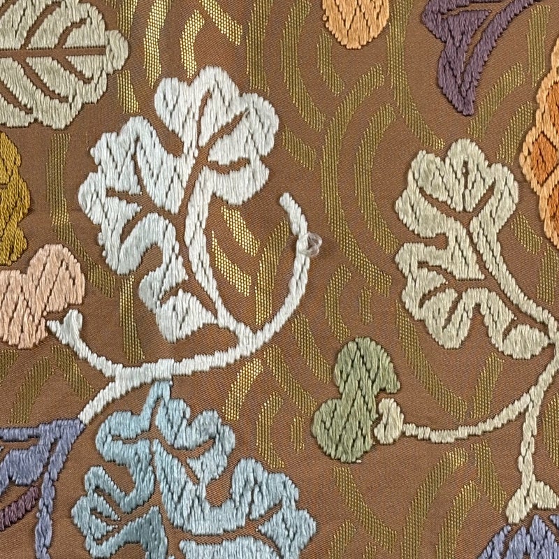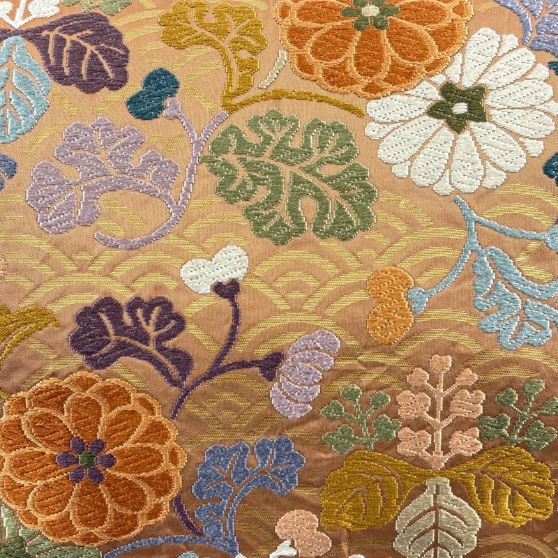 セミフォーマルでお使いいただける袋帯でございます。 見る人に重たい印象を感じさせない女性ならではの、気品豊かな一品です。 締め跡がございます。 表地所々に若干ですが糸ゆるみがございます。 裏地所々にシワがございます。 リユース品としては目立った染み傷なく、状態の良いお品でございます。 ※なお、厳しく商品の状態確認を行っておりますが、記載の汚れ以外にも見落とし箇所がある可能性がある旨ご了承いただけますと幸いです。 沢山の商品の中からご覧いただき誠にありがとうございます。