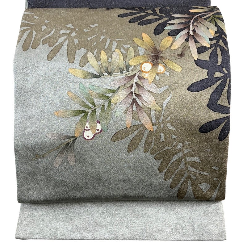 【袋帯】 灰色系 灰緑 秀品 A 帯丈436cm以上 7990-9980 美品 二万以下