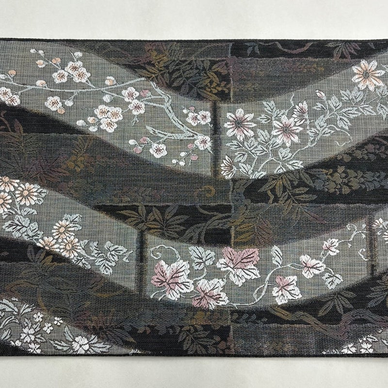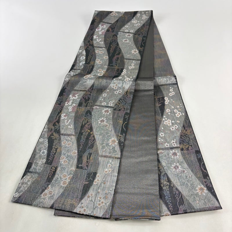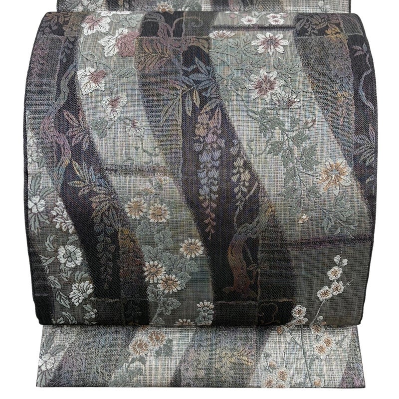 【袋帯】 灰色系 灰緑 秀品 A 帯丈426cm~435cm 7990-9980 美品 二万以下