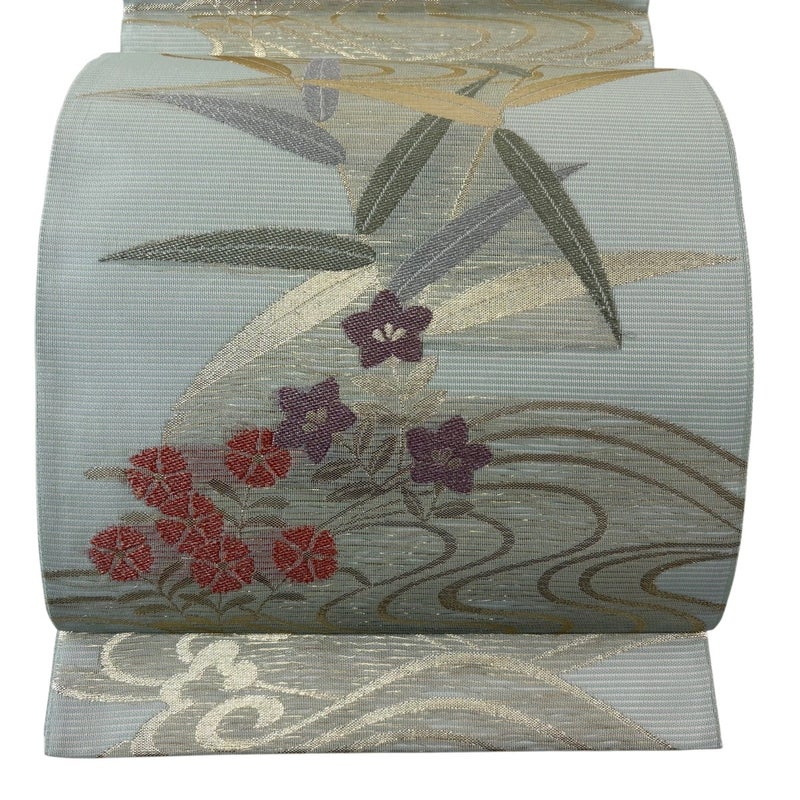 夏帯でございます。 セミフォーマルでお使いいただける袋帯でございます。 見る人に重たい印象を感じさせない女性ならではの、気品豊かな一品です。 リユース品としては目立った染み傷なく、状態の良いお品でございます。 ※なお、厳しく商品の状態確認を行っておりますが、記載の汚れ以外にも見落とし箇所がある可能性がある旨ご了承いただけますと幸いです。 沢山の商品の中からご覧いただき誠にありがとうございます。