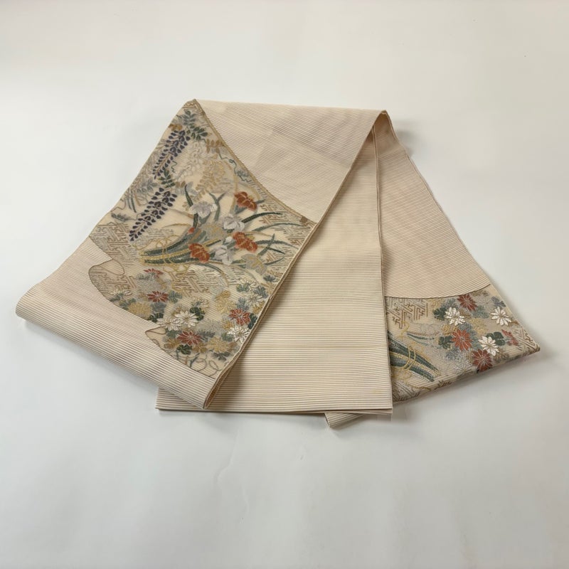 【着物ランク】秀品 【素材】正絹 【帯丈】約450cm 【帯幅】約31cm 【帯仕立て】仕立て上がり 【状態ランク】ランクB 【帯着用シーン】セミフォーマル(色無地・付下げ)