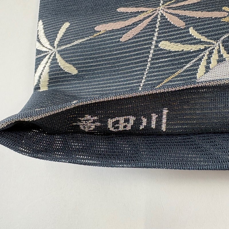 夏帯でございます。 セミフォーマルでお使いいただける袋帯でございます。 見る人に重たい印象を感じさせない女性ならではの、気品豊かな一品です。 帯芯が入っておりません。 締め跡がございます。 中無地締め跡沿いに汚れ、前柄お太鼓間に糸のほつれがございます。 リユース品としては良い状態で、まだまだご活用頂けると思われます。 ※なお、厳しく商品の状態確認を行っておりますが、記載の汚れ以外にも見落とし箇所がある可能性がある旨ご了承いただけますと幸いです。 沢山の商品の中からご覧いただき誠にありがとうございます。