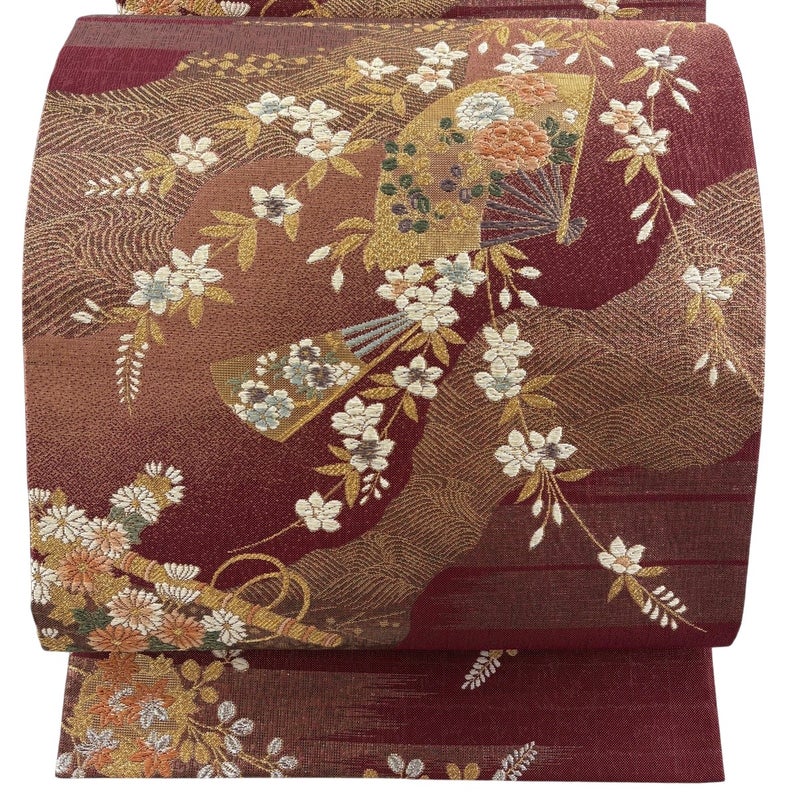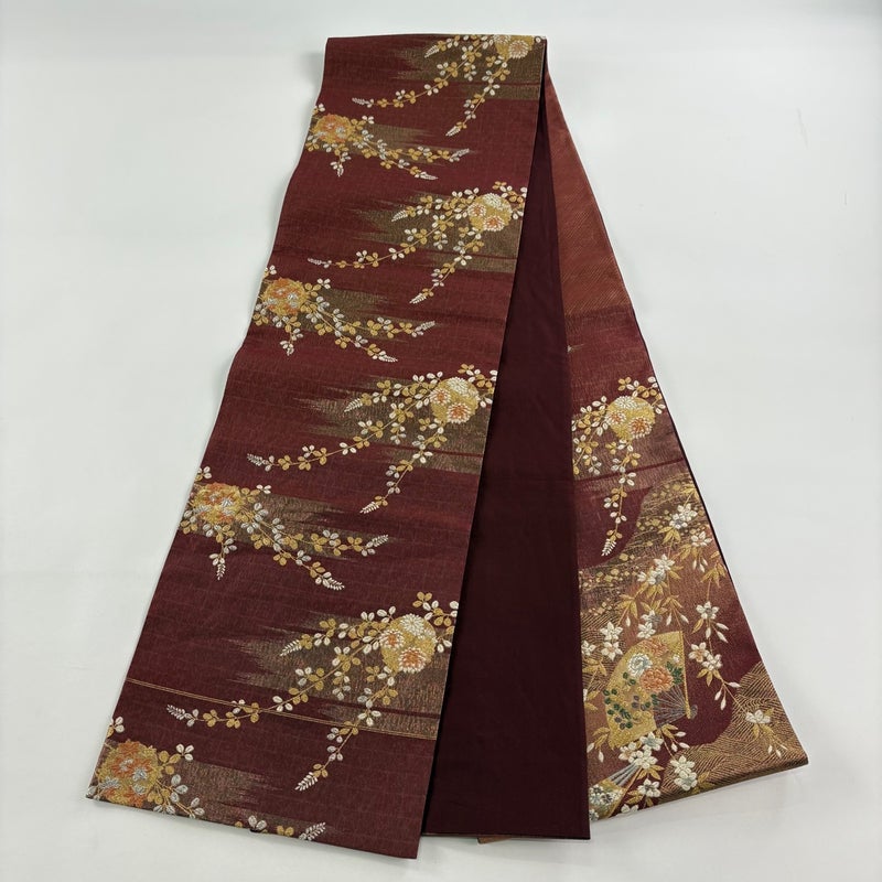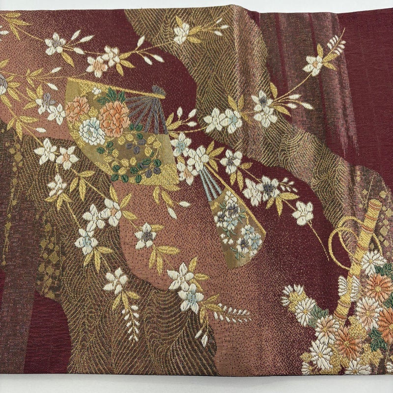 【袋帯】 赤系 えんじ色 秀品 A 帯丈426cm~435cm 7990-9980 美品 二万以下