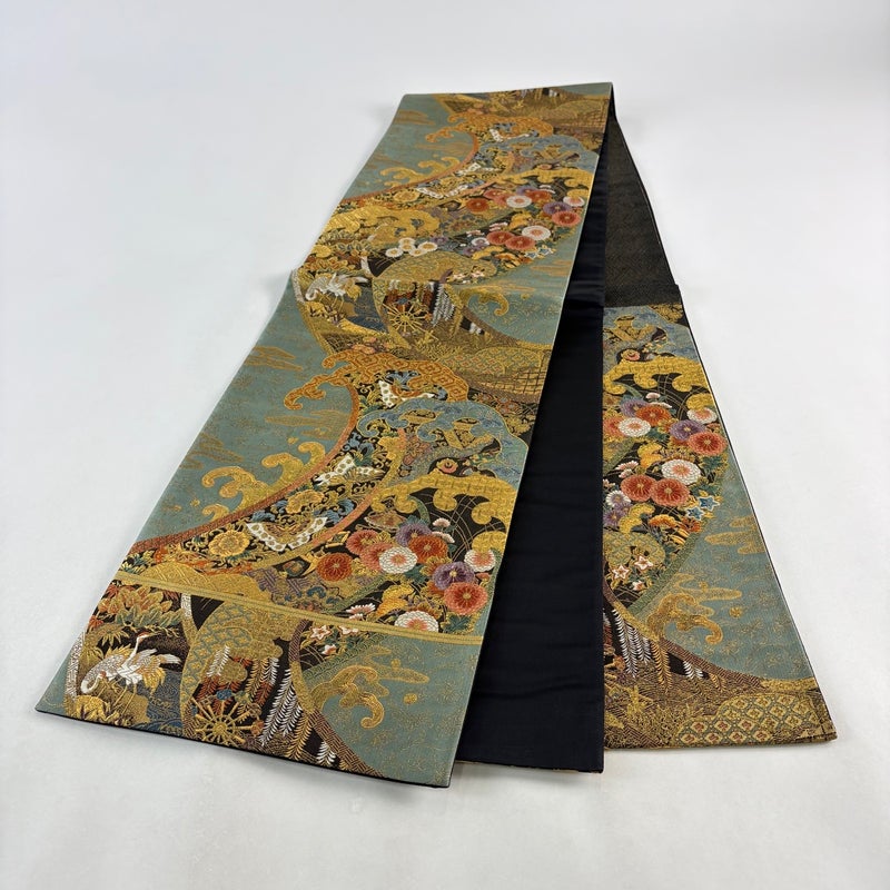 【袋帯】 灰色系 灰緑 秀品 A 帯丈426cm~435cm 7990-9980 美品 二万以下
