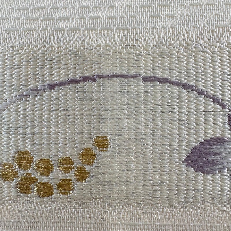 セミフォーマルでお使いいただける夏物の袋帯でございます。 見る人に重たい印象を感じさせない女性ならではの、気品豊かな一品です。 締め跡がございます。 表地全体に目立つヤケ、表地所々にシミ、締め跡沿いに汚れがございます。 裏地全体にヤケ、裏地所々にシミがございます。 ご購入の際はその点ご留意ください。 ※なお、厳しく商品の状態確認を行っておりますが、記載の汚れ以外にも見落とし箇所がある可能性がある旨ご了承いただけますと幸いです。 沢山の商品の中からご覧いただき誠にありがとうございます。