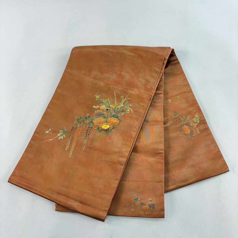 【着物ランク】秀品 【素材】正絹 【帯丈】約426cm 【帯幅】約30.5cm 【帯仕立て】仕立て上がり 【状態ランク】ランクB 【帯着用シーン】セミフォーマル(色無地・付下げ)