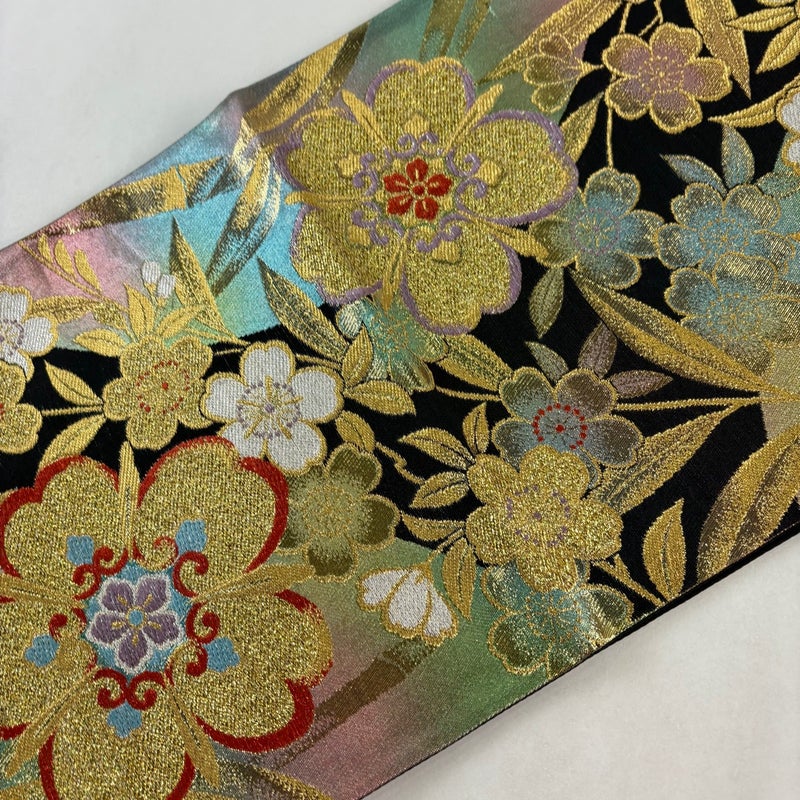 【袋帯】 黒系 黒 秀品 A 帯丈426cm~435cm 7990-9980 美品 二万以下