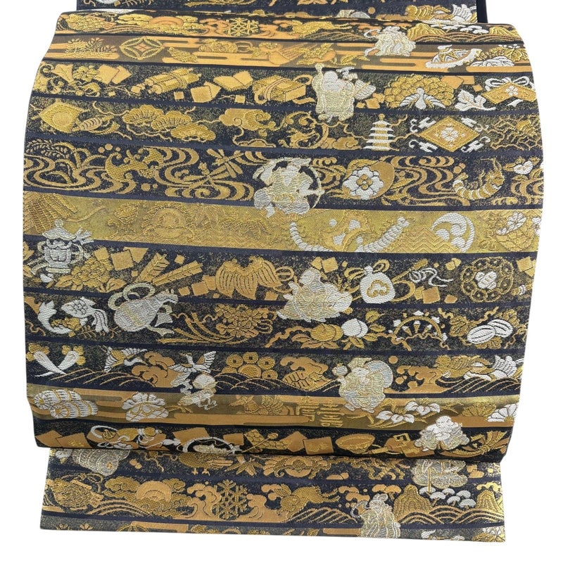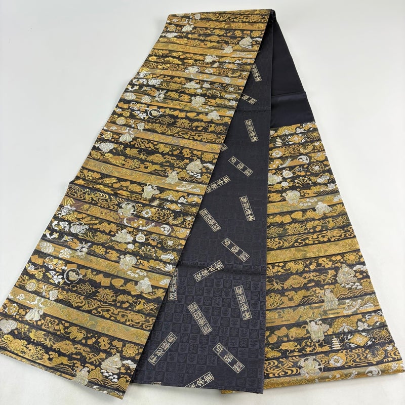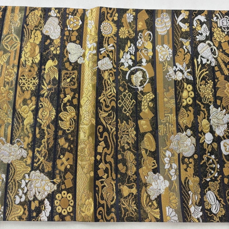 【美品】 袋帯 秀品 七福神 宝尽くし 金糸 箔 金色 六通 正絹