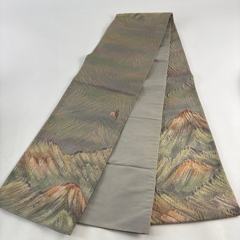 【袋帯】 灰色系 灰緑 秀品 B 帯丈436cm以上 4000-7980 二万以下