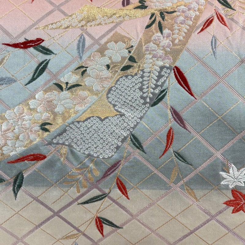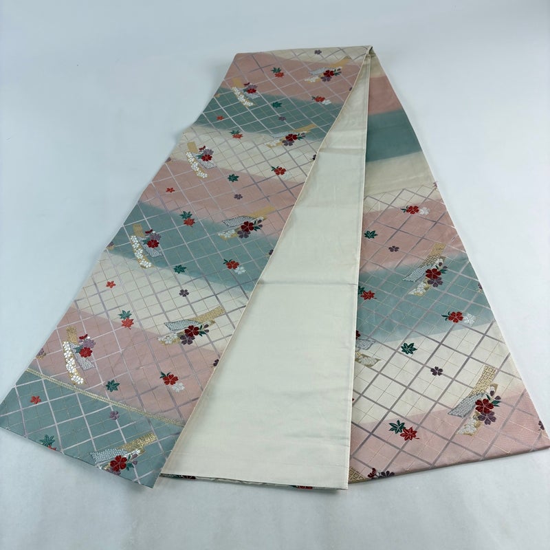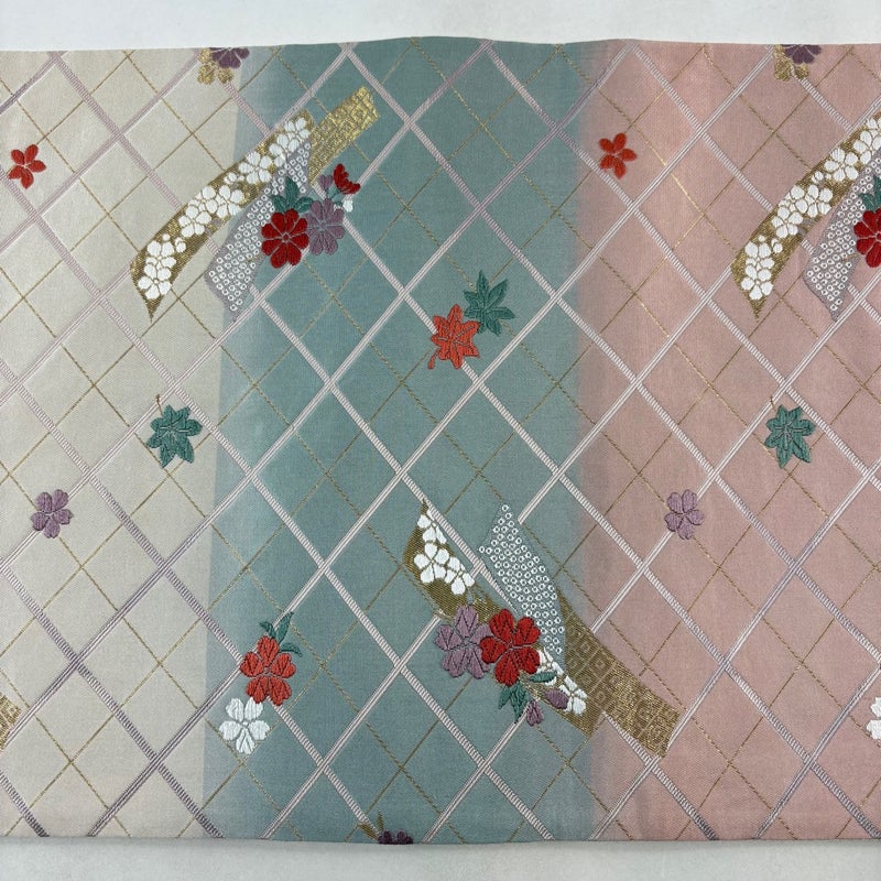 【着物ランク】秀品 【素材】正絹 【帯丈】約416cm 【帯幅】約31cm 【帯仕立て】仕立て上がり 【状態ランク】ランクB 【帯着用シーン】セミフォーマル(色無地・付下げ)