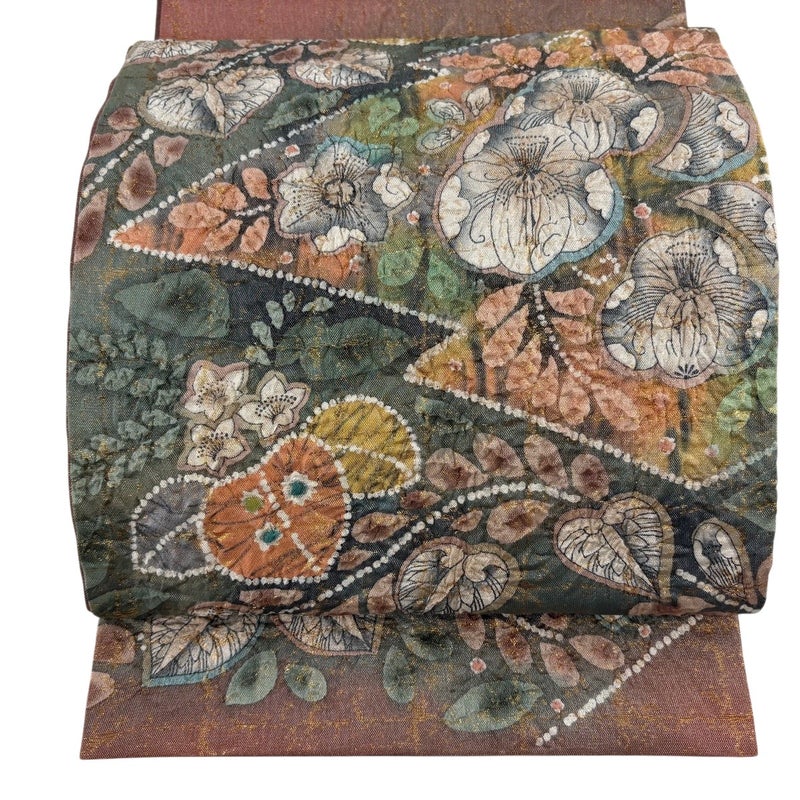 【袋帯】 灰色系 灰緑 秀品 B 帯丈436cm以上 4000-7980 二万以下