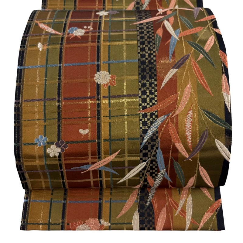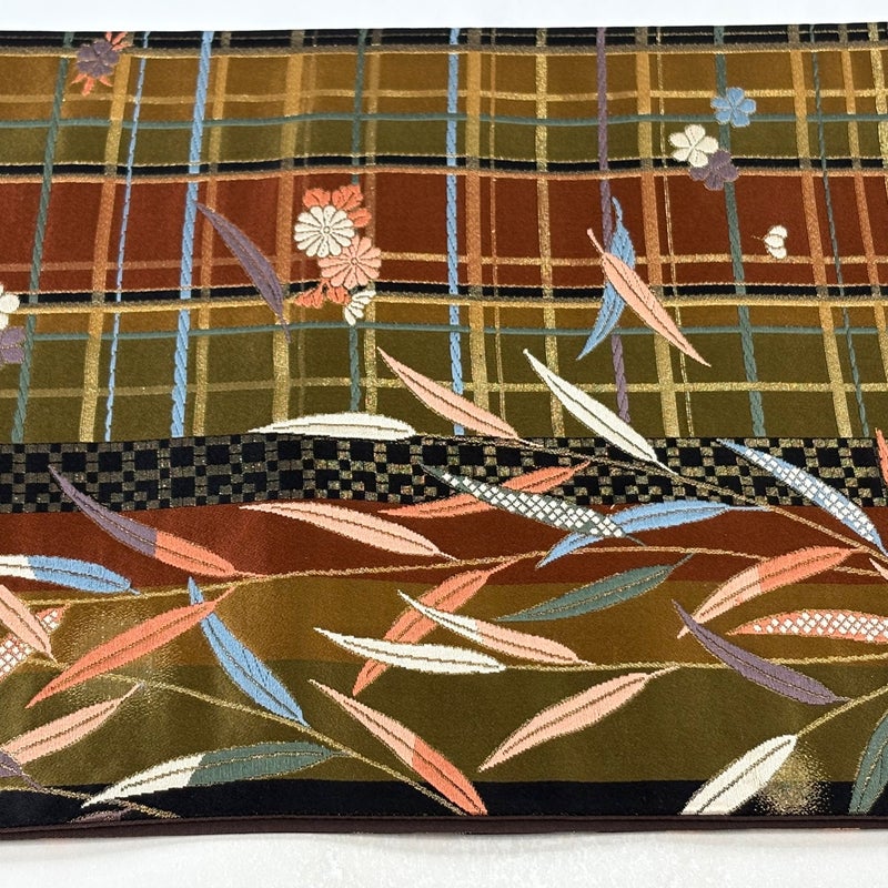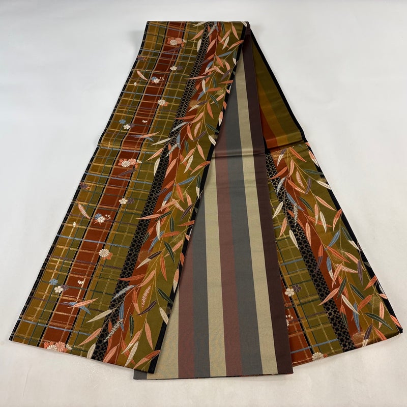 【袋帯】 茶系 茶緑色 秀品 B 帯丈401cm~425cm 4000-7980 二万以下