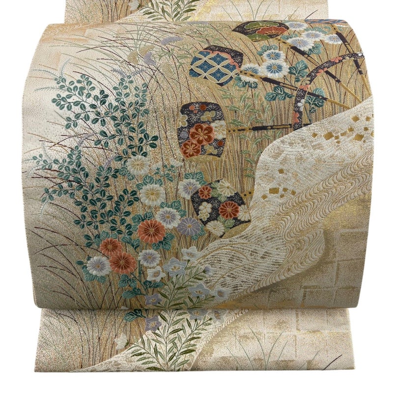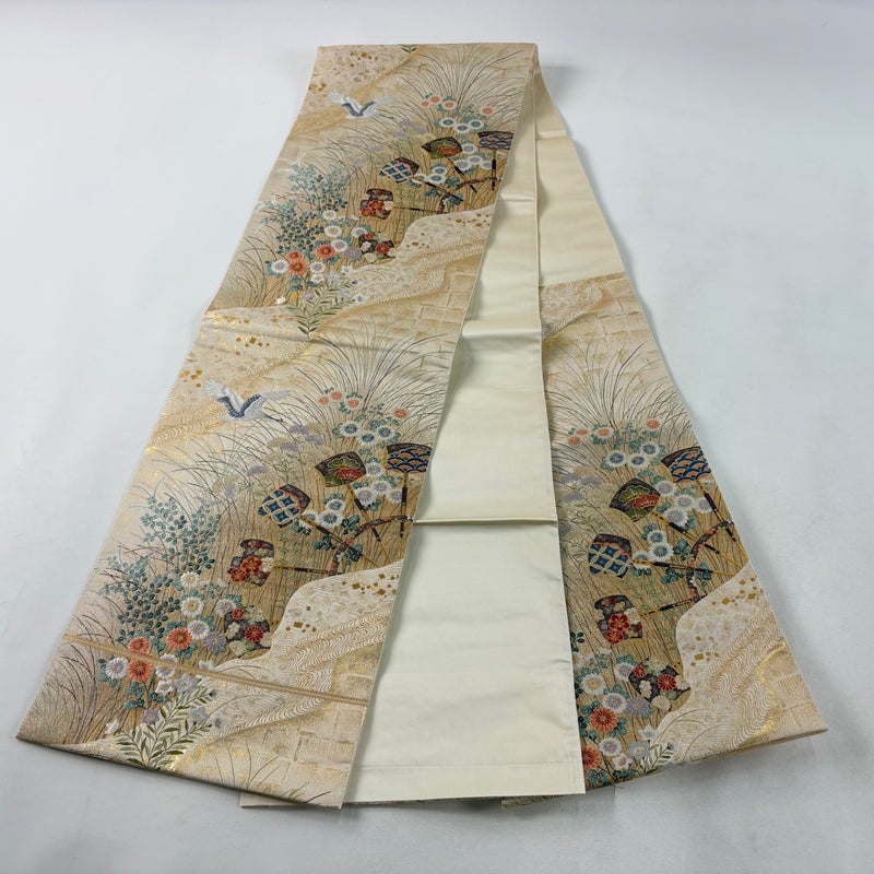 【袋帯】 白系 ベージュ 秀品 A 帯丈401cm~425cm 7990-9980 美品 二万以下