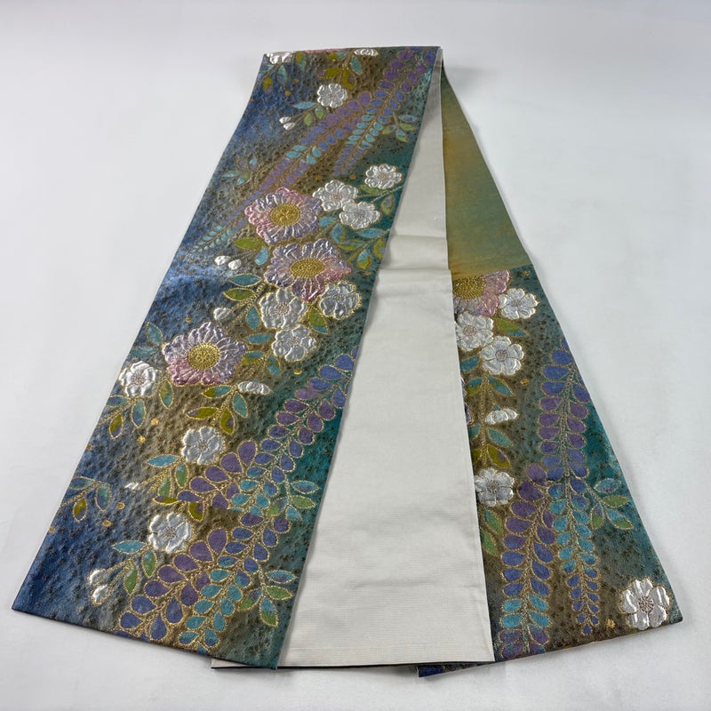 【袋帯】 青系 青緑 秀品 B 帯丈426cm~435cm 4000-7980 二万以下