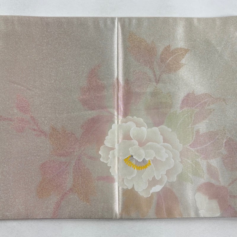 セミフォーマルでお使いいただける袋帯でございます。 見る人に重たい印象を感じさせない女性ならではの、気品豊かな一品です。 締め跡がございます。 手先前柄間に薄いシミ、表地所々に若干の箔の傷みがございます。 リユース品としては目立った染み傷なく、状態の良いお品でございます。 ※なお、厳しく商品の状態確認を行っておりますが、記載の汚れ以外にも見落とし箇所がある可能性がある旨ご了承いただけますと幸いです。 沢山の商品の中からご覧いただき誠にありがとうございます。