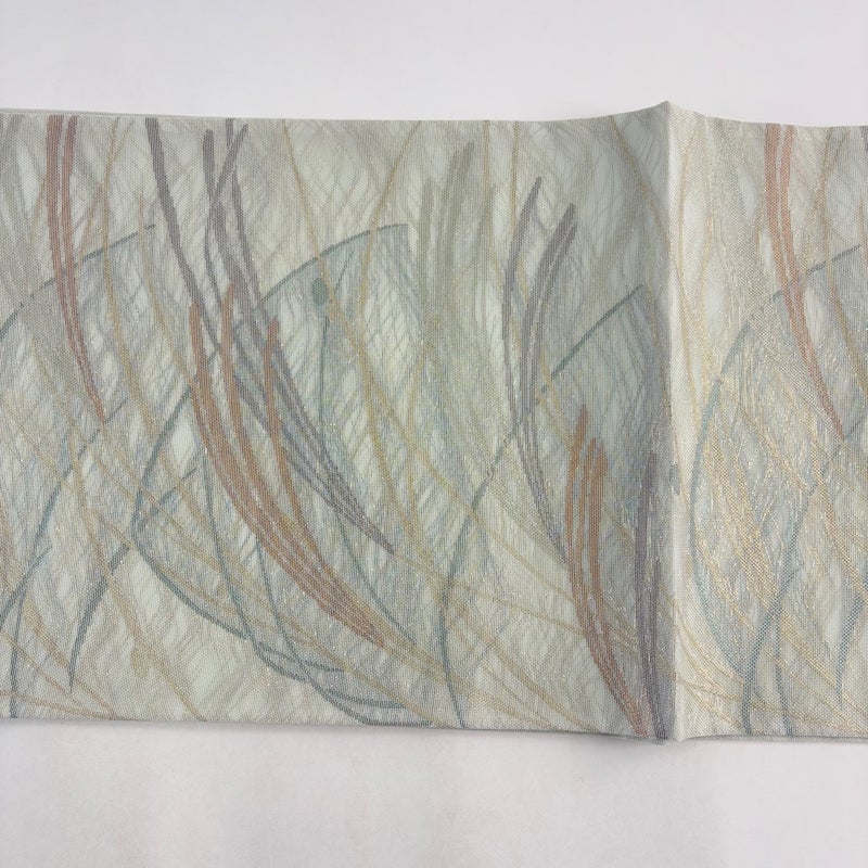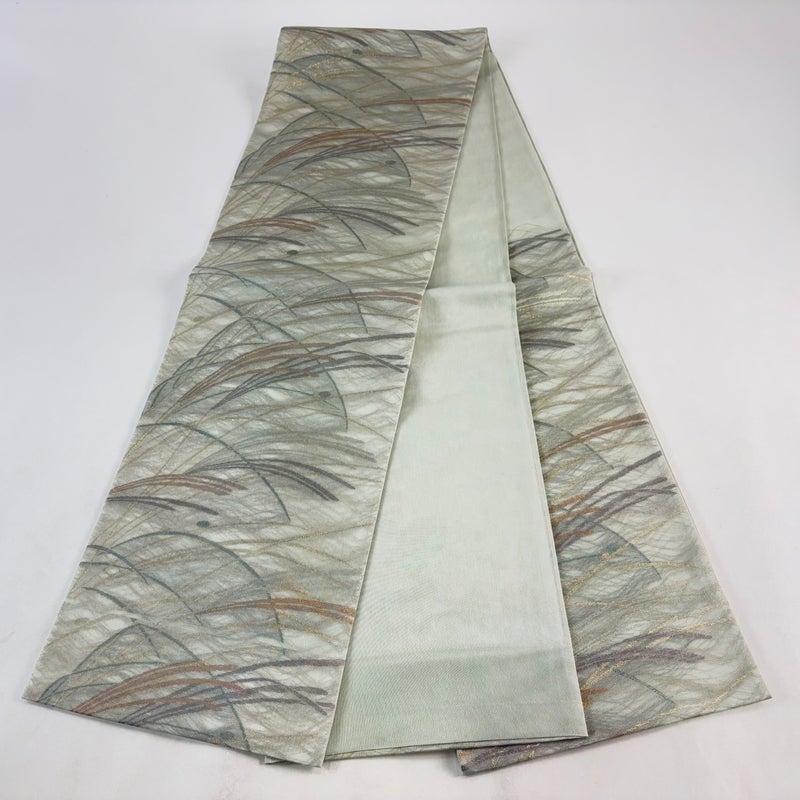 夏帯でございます。 セミフォーマルでお使いいただける袋帯でございます。 見る人に重たい印象を感じさせない女性ならではの、気品豊かな一品です。 締め跡がございます。 お太鼓とお太鼓垂先間に糸ゆるみがございます。 リユース品としては目立った染み傷なく、状態の良いお品でございます。 ※なお、厳しく商品の状態確認を行っておりますが、記載の汚れ以外にも見落とし箇所がある可能性がある旨ご了承いただけますと幸いです。 沢山の商品の中からご覧いただき誠にありがとうございます。