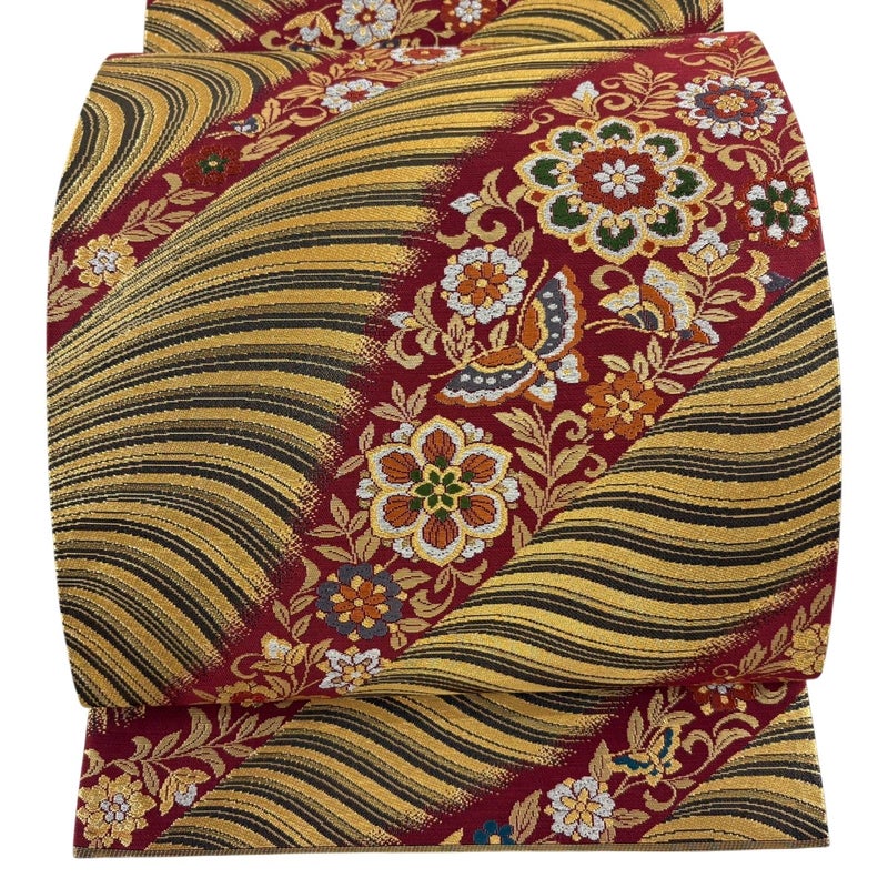 【袋帯】 赤系 えんじ色 秀品 A 帯丈436cm以上 7990-9980 美品 二万以下