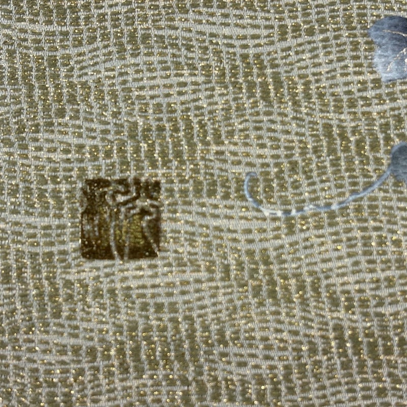 セミフォーマルでお使いいただける袋帯でございます。 見る人に重たい印象を感じさせない女性ならではの、気品豊かな一品です。 手先前柄間にシミがございます。 リユース品としては目立った染み傷なく、状態の良いお品でございます。 ※なお、厳しく商品の状態確認を行っておりますが、記載の汚れ以外にも見落とし箇所がある可能性がある旨ご了承いただけますと幸いです。 沢山の商品の中からご覧いただき誠にありがとうございます。