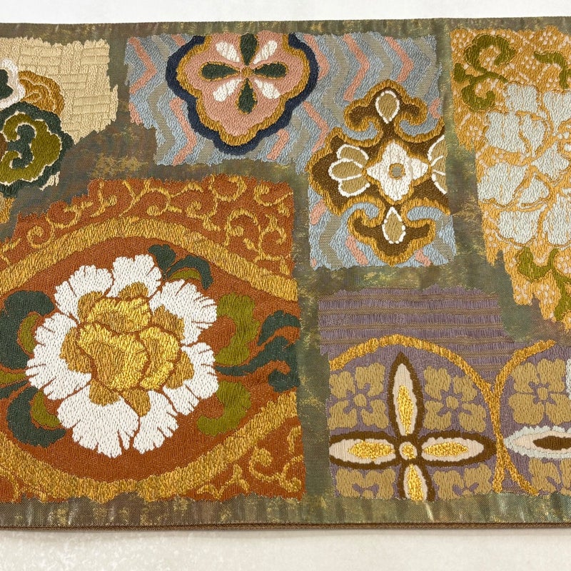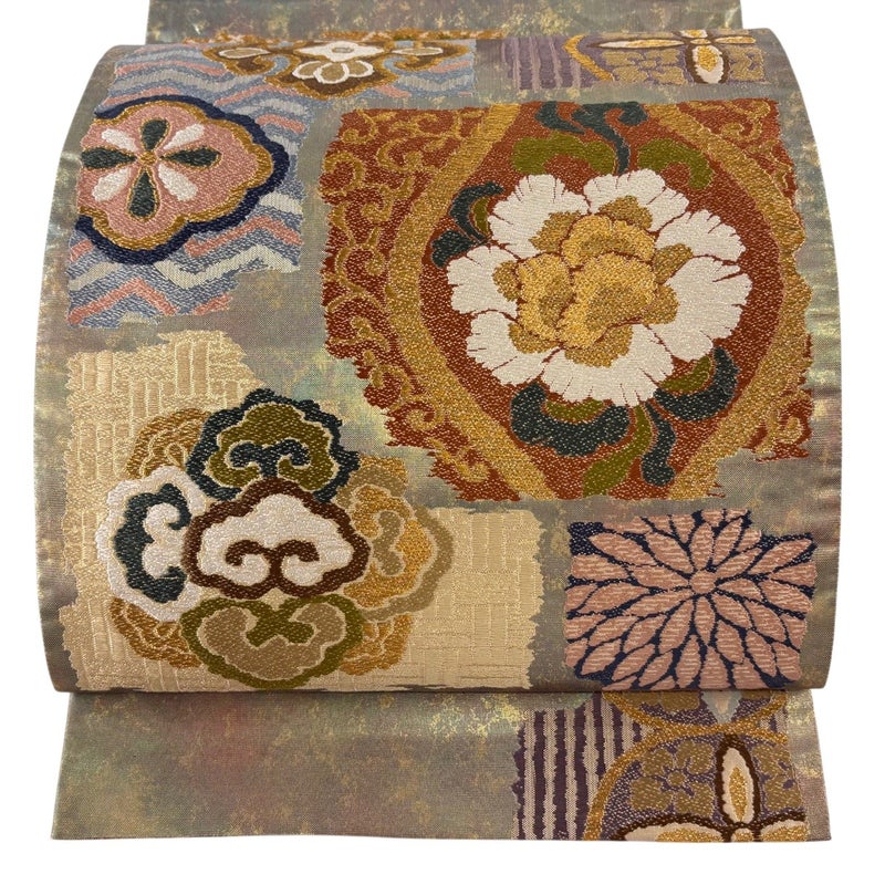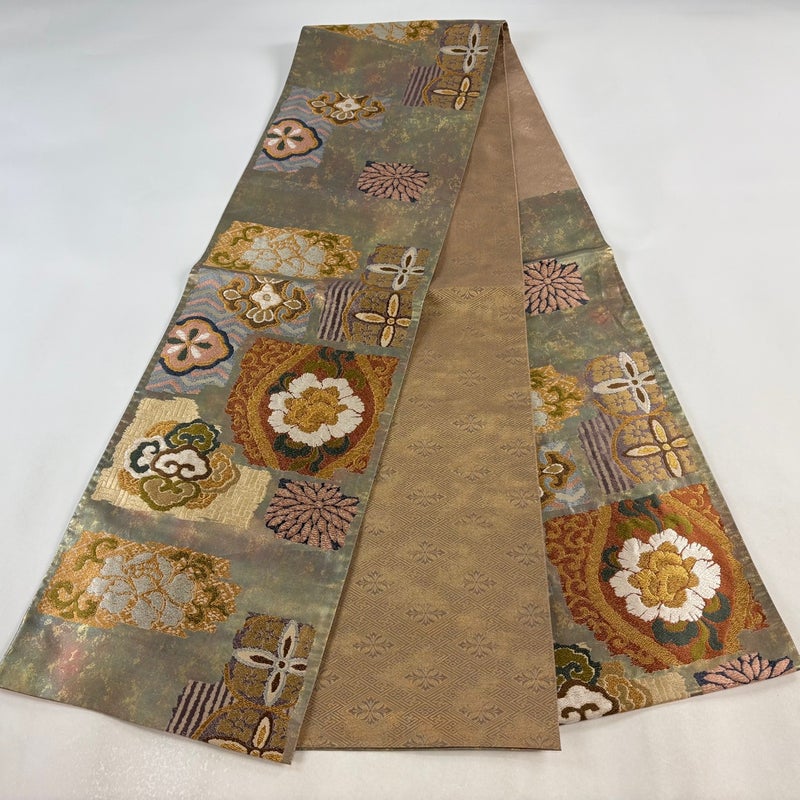 【袋帯】 灰色系 灰緑 秀品 A 帯丈426cm~435cm 7990-9980 美品 二万以下