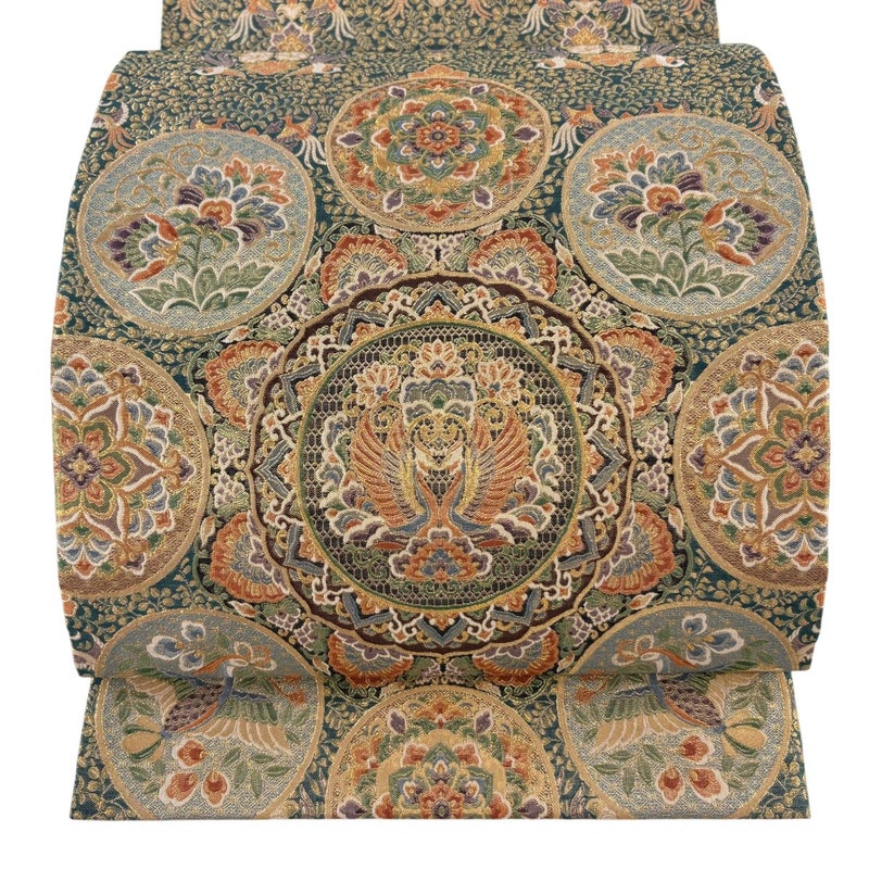 【袋帯】 緑系 緑 秀品 A 帯丈436cm以上 7990-9980 美品 二万以下